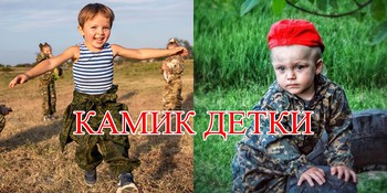 Закажем деткам и их родителям классные лёгкие камуфляжные костюмы, брюки, футболки, банданы. Идеальны для поездок в лес, на пикник, на рыбалку, на дачу, да и просто для всех, кому нравится такой стиль. Можно одеть всю семью в Family look, выглядеть, как одна команда! В ассортименте также берцы - высокие ботинки на шнуровке для детей и взрослых! Цены отличные!