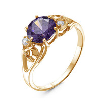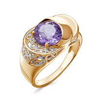 Позолоченное кольцо с фиолетовым фианитом - 1225 - п