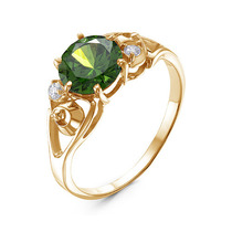 Позолоченное кольцо с зеленым фианитом - 1225 - п