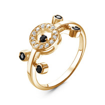 Позолоченное кольцо с черными фианитами - 1320 - п