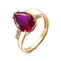 Позолоченное кольцо с фианитом цвета рубин - 1231 - п
