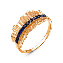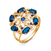 Позолоченное кольцо с фианитами синего цвета - 1257 - п