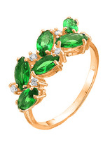 Позолоченное кольцо с зелеными фианитами - 072 - п