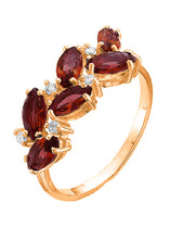 Позолоченное кольцо с фианитами цвета гранат - 072 - п