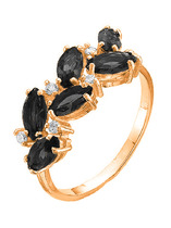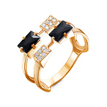 Позолоченное кольцо с черными фианитами - 1317 - п