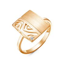 Позолоченное кольцо с бесцветным фианитом - 1287 - п