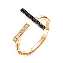 Позолоченное кольцо с черными фианитами - 1356 - п