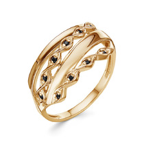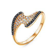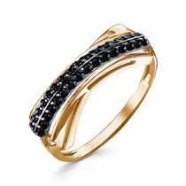 Позолоченное кольцо с черными фианитами - 1326 - п