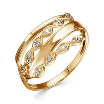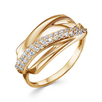Позолоченное кольцо с бесцветными фианитами - 1324 - п