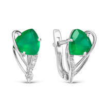 Цвет вставки на фото: зеленый; Проба: 925; Металл: серебро; Тип вставки (камня): зеленый агат, фианиты; Вес: 4.7 г— Описание у На сайте поставщика