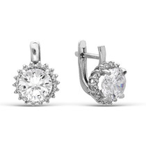 Серебряные серьги с бесцветными фианитами - 049
