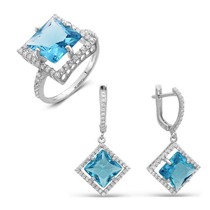 Металл: серебро; Тип вставки (камня): фианиты; Проба: 925; Цвет вставки на фото: голубой; Вес: 6 г