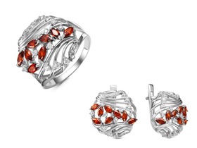 Тип вставки (камня): фианиты; Проба: 925; Металл: серебро; Цвет вставок: под гранат, б\ц; Вес: 6.8 г— Описание у На сайте поставщика