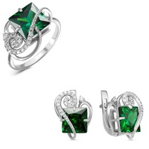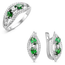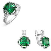 Проба: 925; Металл: серебро; Тип вставки (камня): фианиты; Цвет вставок: зеленый; Вес: 5 г— Описание у На сайте поставщика