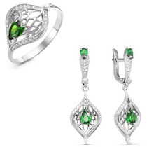Тип вставки (камня): фианиты; Проба: 925; Металл: серебро; Цвет вставок: зеленый; Вес: 8 г— Описание у На сайте поставщика