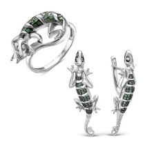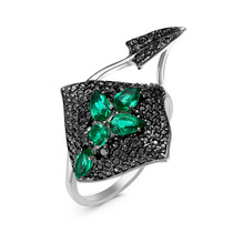 Проба: 925; Металл: серебро; Тип вставки (камня): фианиты; Цвет вставок: черный, зеленый; Вес: 6.08 г— Описание у На сайте поставщика