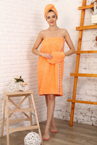 Накидка женская махровая (парео) для бани/сауны на липучке б/р, цвет: 029-Абрико