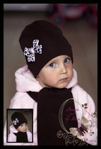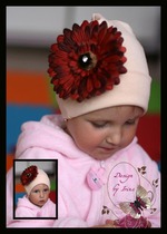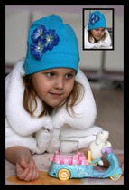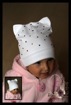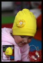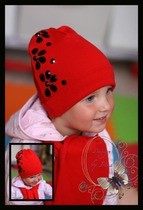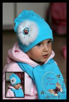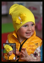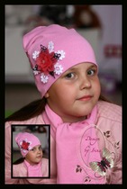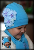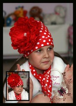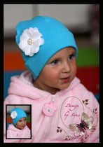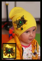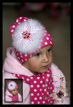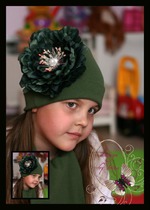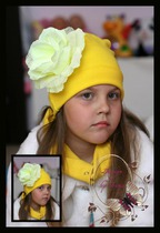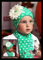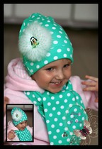 Шапочка цвета зеленой лазури в белый горох с герберой…
