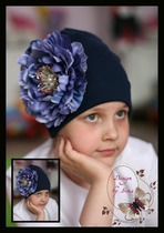 Тёмно-синяя шапочка с чернильным пионом Акварель…
