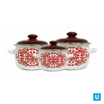 набор 31 белый Айша, крышка вишнёвая   кастрюли сфер. с н/об.: 2л; 3л и 4л