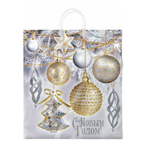 Пакет Новогодний ПЭ " Интерпак " с пластиковой ручкой ПВД, 40*44см 100мкм Блики
