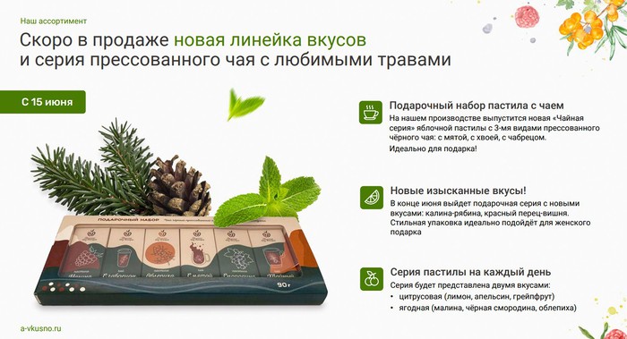 Набор подарочный Вкусно, без сахара "Яблочкая пастила + чай" 90 грамм
