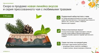 Яблочная пастила: яблоко-малина, 15 г, яблоко-чёрная смородина, 15 г, яблоко-облепиха (без косточки), 15 г.