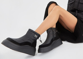 ХАРАКТЕРИСТИКИ ТОВАРА: Вид товара: Полусапоги женские Цвет: Черный Материал подошвы: ТПР Материал верха обуви: Нейлон с водоотталкивающим слоем waterproof/ Натауральная замша высокого качества Материал подкладки: Натуральная овечья шерсть 100% Материал стельки: Натуральная овечья шерсть 100% Размерный ряд: 36-41 Метод крепления: Утяжка ФИРМЕННАЯ КОРОБКА с ручкой: