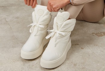 ХАРАКТЕРИСТИКИ ТОВАРА: Вид товара: Полусапоги женские Цвет: Белый Материал подошвы: ТПР Материал верха обуви: Нейлон с водоотталкивающим слоем waterproof/ ЭКОКОЖА стойкая к истиранию Материал подкладки: Натуральная овечья шерсть 100% Материал стельки: Натуральная овечья шерсть 100% Размерный ряд: 36-41 Метод крепления: Молния с фирменным логотипом сбоку/Шнуровка эластичная с фиксатором