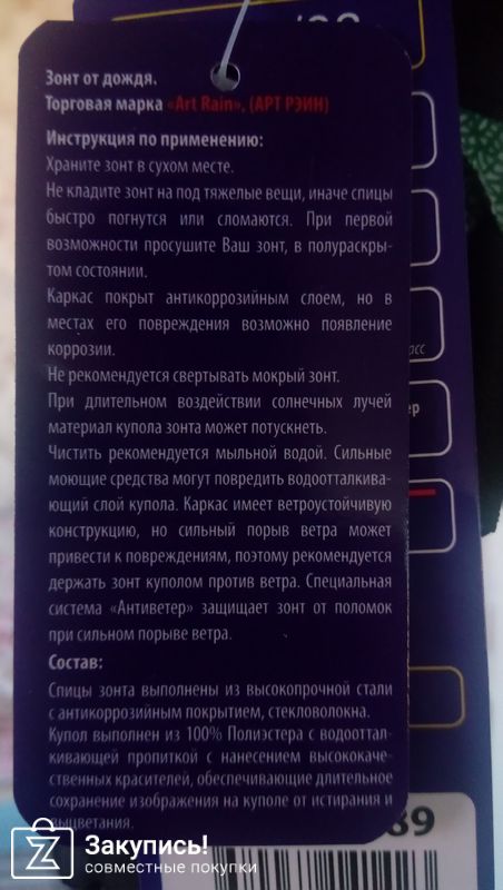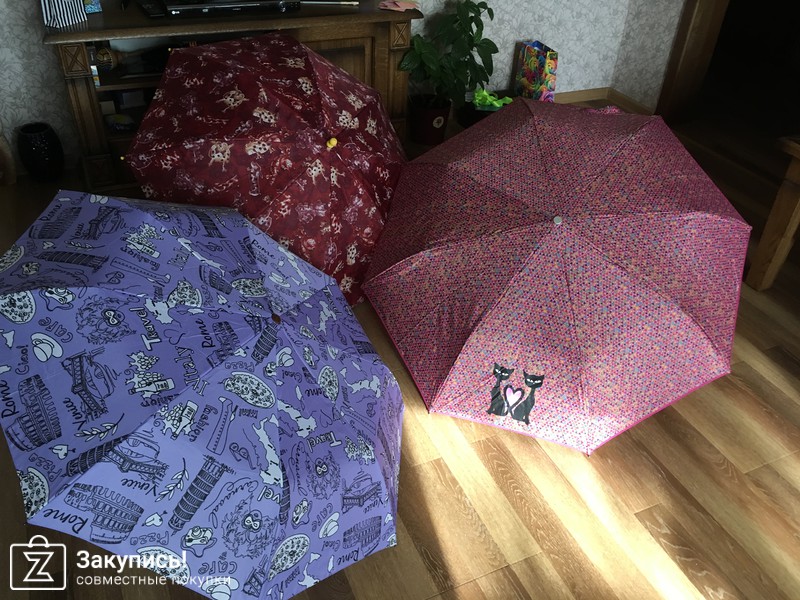 Заказывала три зонта: полностью автоматический зонт Nex, полуавтоматический зонт Airton и зонт-трость детский Ame Yoke. Качество отличное, зонты яркие. Большое спасибо организатору за такую нужную закупку!!!
