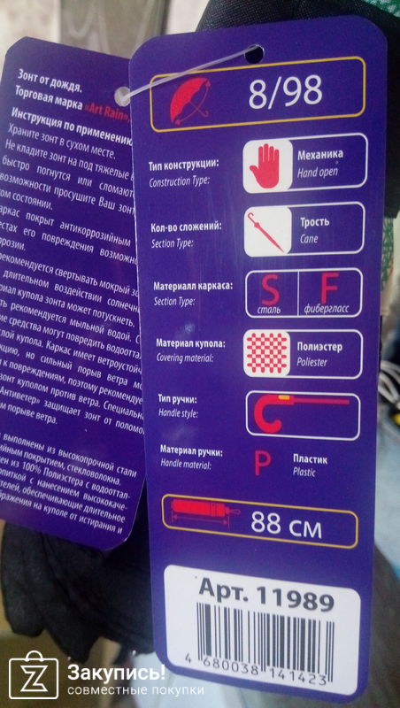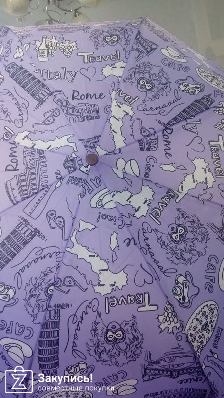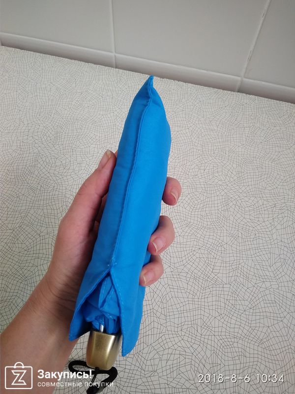 Получила уже второй зонт из этой закупки. Всем довольна! Решила в этот раз взять зонтик поменьше длинной, но с большим куполом и полностью механический. Сам зон очень понравился. Длина зонта 19 см, а купол 103 см....он просто огромный) Конечно, уже не привычно открывать и закрывать зонт в ручную....еле открыла его в первый раз))...но буду привыкать. Надеюсь, что прослужит долго!