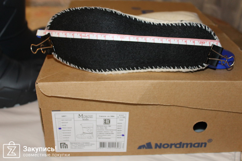 Старшему сыну взяла Сапоги из ЭВА ПЕ-17 («NordMan Light») 39 размер - длина стельки сапога 26,5 см , а вот у вкладыша оказался 28 см, поэтому когда их одеваешь, вкладыш сборится и тесновато.