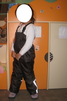 ну вот руки дошли... зима закончилась! в костюме отходили - ляпота. Ходили без поддевы (один раз только одели штанишки флис), а так только колготки и легкую кофту на футболку - ни разу не замерзли. Капюшон большой пригодился - на шапку с помпоном одевали от ветра. Куртку думаю еще проносим (правда не знаю сколько), а вот штанишки уже коротковаты, но мы вытянулись очень: к концу зиму нам было 1 г 5 м и рост у нас 85 см. Доча бегала в нем свободно (только начинали ходить).