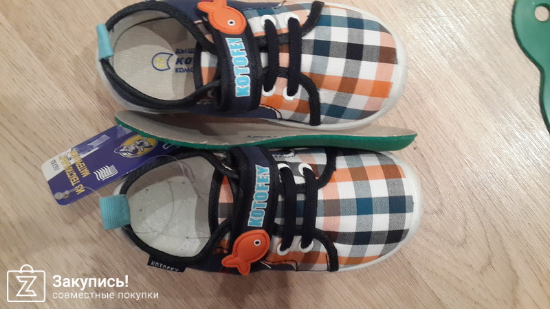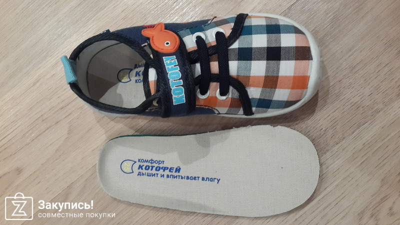 25 размер. По стельке 16,5см. Нога у ребенка 15,5см, внешне видно, что обувь не пропорционально туловищу))) но внутри запас не такой уж и большой кажется. Запаха нет. Упакованы были в фирменную коробку Котофея. Шнурок-обманка, это резинка. На сайте поставщика они темнее, мне попались посветлее. Стелька очень интересная: и дышит, и впитывает))) еще и каркасная.