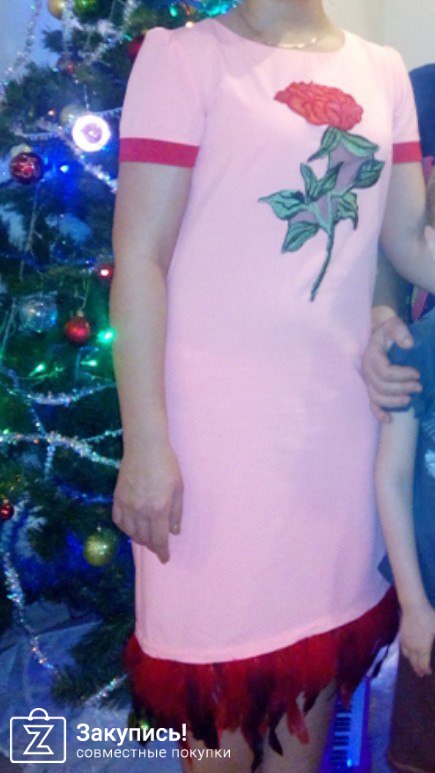 ещё вот такое платье заказывала,на сайте уже нет розово-молочное,на груди цветок,отделка красным,заказывала специально на новый год дома сидеть!По низу пришила полоску перьев(год петуха же!).