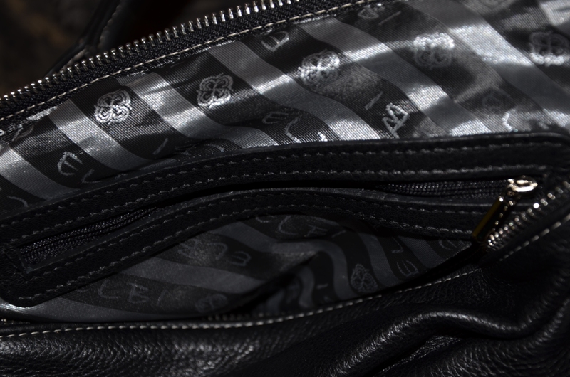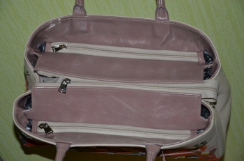 Внутри: Три отделения на молнии. Внутри:карман для мелких предметов, карман под мобильный телефон,карман на молнии.На задней стенке наружный карман на молнии.