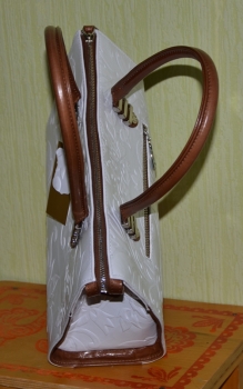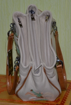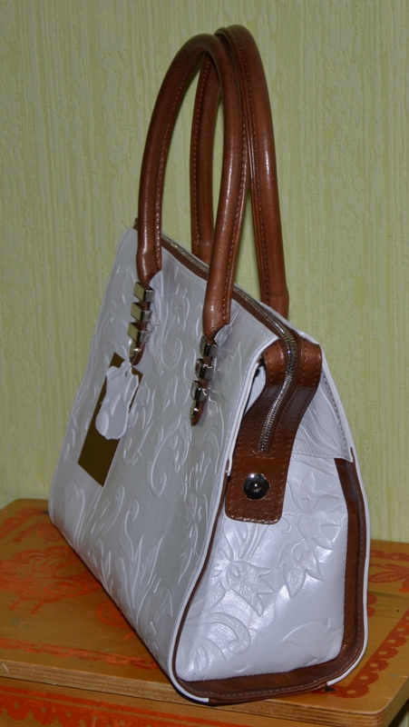 Материал: Натуральная кожа Размеры: Длина: 38 см Высота: 21 см Ширина: 14 см Длина ручек: 33,5 см Наличие плечевого ремня:нет Внутри: Три основных отделения на молнии. Внутри среднего: карман для мелких предметов, карман под мобильный телефон,карман на молнии.На задней стенке наружный карман на молнии. На дне клепки-ножки. Тип застежки: Застегивается на молнию |