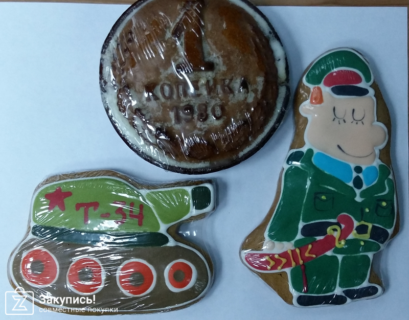 Пряники крутяцкие. Брала на 23 февраля коллегам-мужчинам танки - оценили и посмеялись. К 8 марта взяла с запасом те, у которых внутри сгуха, а сверху глазурь и печать. Сегодня утром обнаружила, что раздарила не все, один остался. Забрала на работу к чаю. Вкусно так! Спасибо за вкусную и необычную закупку.