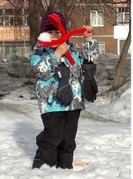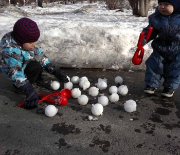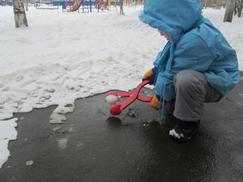 снег действительно приятным для лепки был лишь несколько раз за эту зиму. да и мы то болели, то спешили, то ленились фотографировать, но суть не в этом. снежколеп мы таскали в любой мороз с собой. приноровиться удавалось к любым условиям.