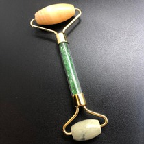 Массажер для лица двусторонний из зеленой Яшмы, золото