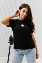 BER-67079/13 Футболка женская (черный+самолет)