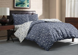 ЛГ-КПБ-листики на сером КПБ Поплин листики на сером