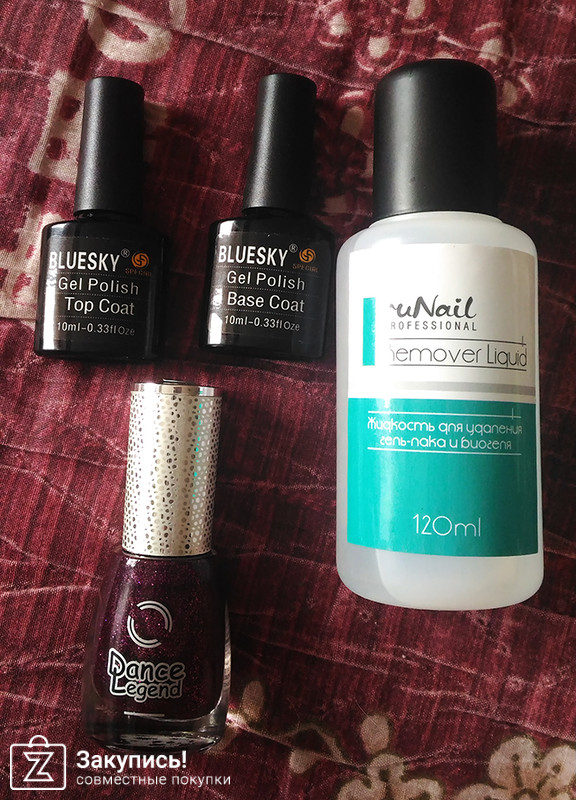 Получила заказ. Все очень понравилось. Жидкость для удаления гель-лака и биогеля очень вкусно пахнет дынькой. Просто супер!!! Так достали эти запахи у обычных средств, а здесь прям отдушина))) Песочный лак Дэнс Легенд ОФИГЕННЫЙ! Тон 16 Аметист. Там аж 15 мл. Наносится, конечно, тяжело, ибо сохнет мгновенно! На ногтях очень красивый, я от него без ума. Как от лака в целом, так и от текстуры и цвета. Глубокого баклажанового оттенка.
