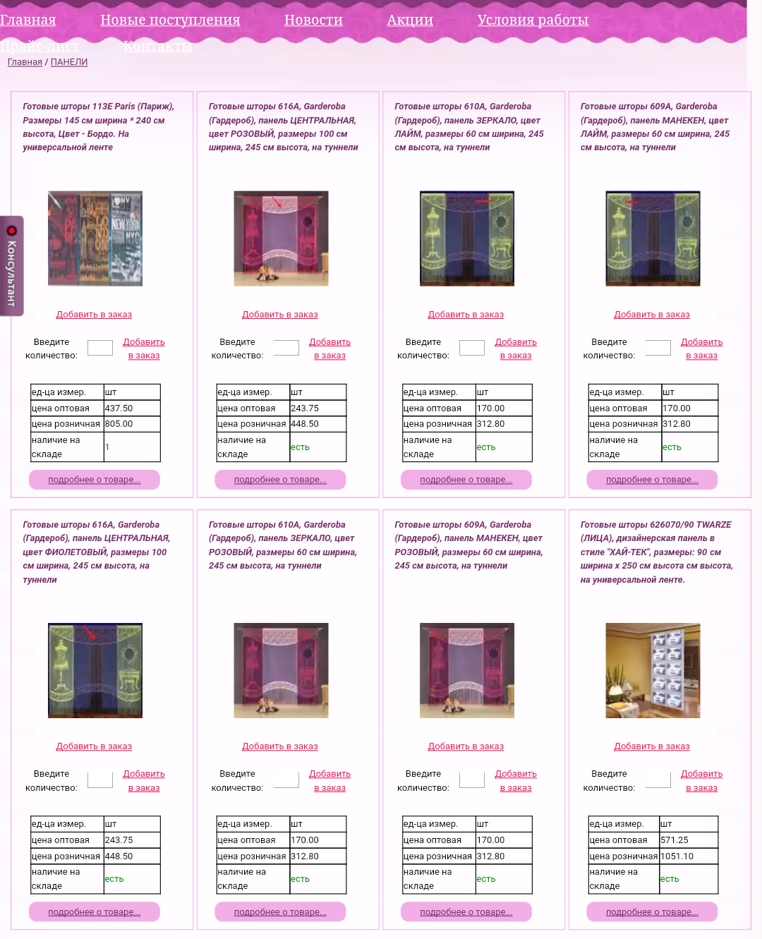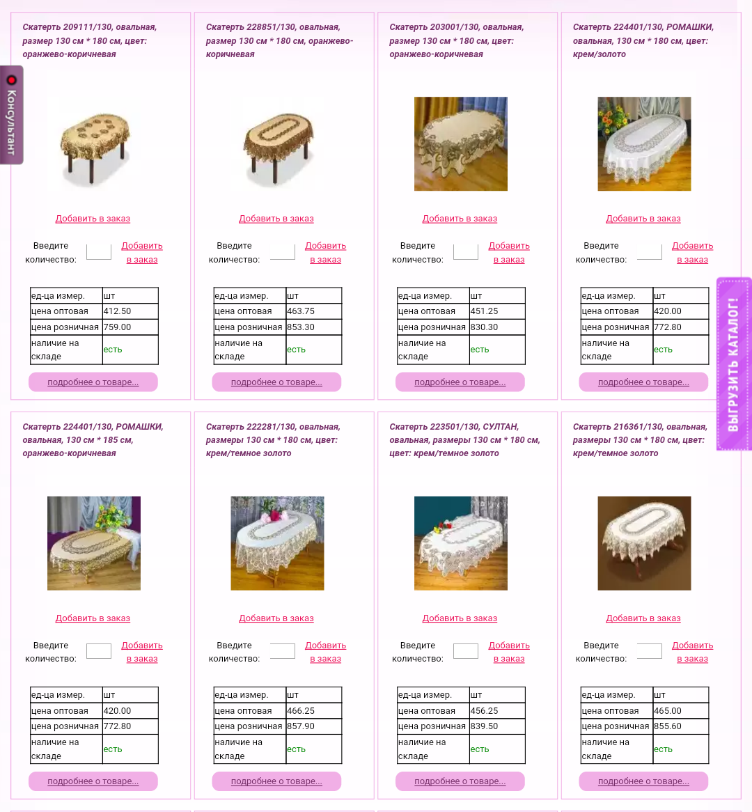 Полный каталог товаров для заказа можно увидеть на сайте поставщика: