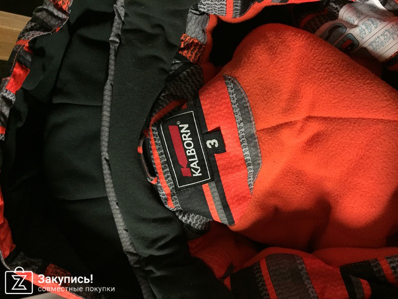 Вот и пришёл наконец-то к нам Kalborn. Сразу скажу,что внешне очень крутой и нам понравился! Ждали конечно долго) Заказ делала 23.11,получила (Моска) 29.12. Конечно не все легко в закупках) (то расцветки нет после сделанного заказа, то ждёшь пока магазин пришлёт (заказывала первый раз и принцип не знала), то курьер не может отправить а один день, а только через 4.. ну да ладно!По цене сначала цена заманила 2780р,потом орг.сбор,потом доставка и 3760р в итоге. Конечно это недорого для слитного зимнего комбинезона. Заказала размер 3(104/110) на рост 106,может надо было брать 4ый,хотя штаны с запасом,показалось в груди и плечах он прям по фигуре (деткам пухленьким точно радо побольше брать),он тёплый и прям толстый свитер под него не нужен.. В действии ещё не смотрели,время покажет. На спинке Флис до подмышек,на шее,манжетах и в капюшоне тоже флис, чуть потоньше. Хорошая фурнитура. Молния закрывается сверху тканью,капюшон затягивается, манжеты просто класс:с защитной \"варежкой\" на руку и липучкой на основном рукаве. В брюках защитная \"юбочка\" с резинкой от снега,это очень хорошая вещь,по опыту и штрипки-резинки обычные( под обувь которые )с ней не нужны. Расцветка яркая,сыну очень понравился. Если оправдает себя,то точно буду ещё заказывать. В Москве такой фирмы в магазах нет.