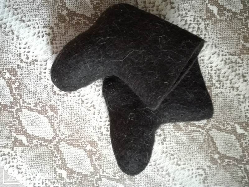 В предыдущих постах описывается неравномерность толщины валенок. На наших чёрных та же проблема((( И кажется что тонковаты. Хотя были у моей крестной валенки ручной работы, из деревни, где валяют в бане по индивидуальным меркам, и они тоже казались тонкими, но шерсть была сваляна очень плотно. А на этих валенках шерсть сваляна рыхло и осыпается.