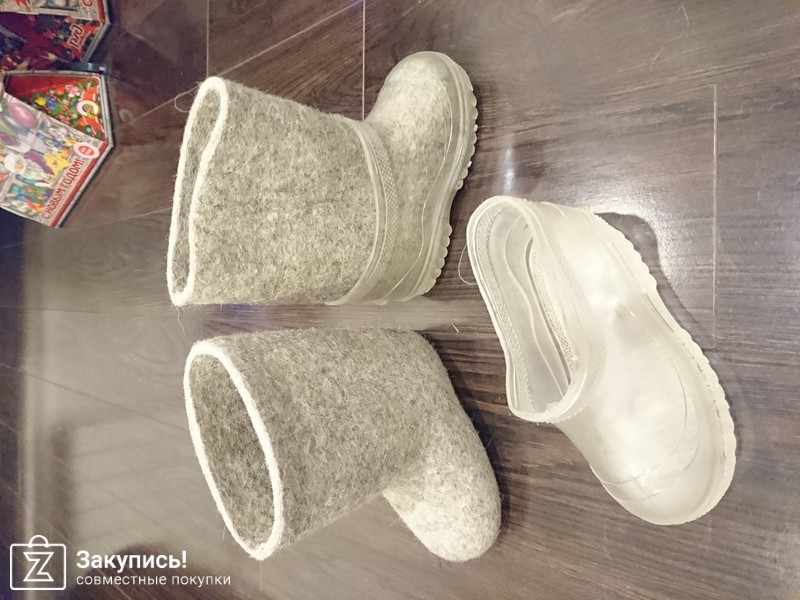 Заказывала детские серые валеночки и силиконовые галоши. Валенки супер, мягкие, теплые. Спасибо Марине за закупку!!! Валенки и галоши надо брать одного размера.