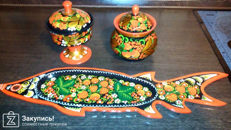 заказывала вазу для варенья, ложку, потом насмотрела солонки. Такая красота пришла! Плотная лакировка, рисуночки- прелесть, тонкая прорисовка. все блестит- как раз на пасху стол украсит!
