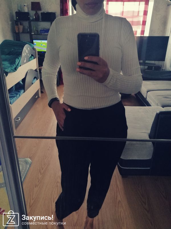 Суперская водолазка молочно-белого цвета и всего за 700 р! Качество отличное, мягкая как шелк, приятно надевать, и она в полосочку )) плюс она хлопковая - жарко не будет в ней точно, очень хороший высокий ворот, можно собрать в гармошку, можно в два раза согнуть! Я довольна