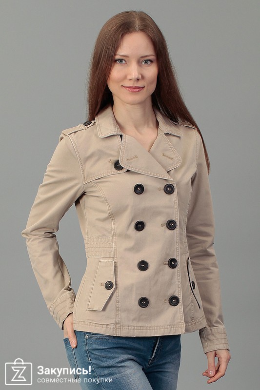 Новый короткий плащик-ветровка. Все атрибуты классического тренча: благородный цвет, 100% хб, двубортная застежка на контрастные пуговицы, ворот с лацканами (верх, как в классике - на стойке), рельефные швы, погончики и вверху отлет на пуговице.